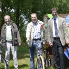 Der Übach-Palenberger Bürgermeister hatte sich dabei Verstärkung aus seinem Rathaus mitgebracht. Sowohl der 1. Beigeordnete Helmut Mainz als auch Dezernent Hans-Peter Gatzen waren mit ihren Fahrrädern mit dabei, als die Gruppe vom Bahnhof in Herzogenrath aus in Richtung Geilenkirchen startete.