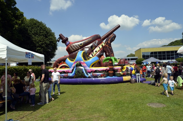 Bürgermeister Wolfgang Jungnitsch (CDU) freute sich sichtlich über den wieder erfreulich großen Besucherandrang bei den 4. Übach-Palenberger Familientagen, kurz „ÜPF“ genannt. Dank der Kreissparkasse Heinsberg und NEW/west Energie und Verkehr, die als Sponsoren des ÜPF durch die veranstaltende Stadt Übach-Palenberg auch in diesem Jahr gewonnen werden konnten, gab es für große und kleine Besucher bei „freiem Eintritt“ in das Ü-Bad wieder tolle Spiele, gute Unterhaltung und bestes Wetter. Viele Übach-Palenberger Vereine bzw. ortsansässige Organisationen waren mit einer noch größeren Zahl an freiwilligen Helferinnen und Helfern als im Vorjahr vertreten. Ohne diese Freiwilligen hätte dieses Event gar nicht stattfinden können. Daher galt der Dank von Bürgermeister Wolfgang Jungnitsch am Samstag bei der offiziellen Eröffnung nicht nur seiner Rathausmannschaft um die Organisatoren Martina Waliczek und Thomas Lohren, sondern in erster Linie all denFreiwilligen, die an einer riesen Hüpf- und Rutschwelle, am „weißen Hai“, am „haut den Lukas“, an den großen Wasserlaufbällen und …. und ….. und …. ihren Aufsichtsdienst verrichteten. Auch für das leibliche Wohl der Besucher war bestens gesorgt. Neben dem vielfältigen Angebot des Kiosk der Eheleute Hübben im Ü-Bad konnte sich die vielen ÜPF-Besucherinnen und ÜPF-Besucher am Getränkestand, der in diesem Jahr vom THW Übach-Palenberg betreut wurde, dem Grillstand der Jugendfeuerwehr der Stadt und der Cafeteria des Café Plum auf dem Freibadgelände stärken.