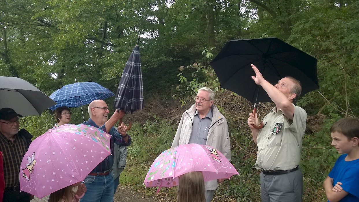 Die CDU-Fraktion hatte sich vorgenommen, sich einen Teilbereich des Forstwirtschaftsplanes für Übach-Palenberg erläutern zu lassen und hatte hierzu Wolfgang von der Heiden vom Landesbetrieb Wald und Holz NRW, Regionalforstamt Rureifel-Jülicher Börde, Forstbetriebsbezirk Selfkant, nach Übach-Palenberg eingeladen. Bei der Begehung des Herbacher Waldes vermittelte Wolfgang von der Heiden viel Wissenswertes. So erläuterte er, dass der Herbacher Wald eine Restwaldfläche an einem Steilhang zum Übach hin ist. Auf der Lößhochfläche wurde hier der Wald schon vor langer Zeit gerodet, da hier sehr fruchtbare Ackerböden vorhanden sind. Seit etwa 10 Jahren ist die Waldfläche durch sehr begrüßenswerte Ersatzaufforstungen um 60% erweitert worden. Dies ist auch naturschutzfachlich äußerst wertvoll. In den Ersatzaufforstungen wachsen auch sehr seltene Baumarten wie Elsbeere und Speierling. Der alte Hangwald, so führte Wolfgang von der Heiden aus, ist deutlich nährstoffärmer, da die wertvollen Lößböden zum Übach hin erodiert sind und tertiäre Kiese und Sande zu Tage treten. Der Altwald ist durch ältere, oft skurril geformte Eichen naturschutzfachlich sehr wertvoll, da hier ein Lebensraum für den Hirschkäfer ist. Dieser Altwald wird vom Regionalforstamt Rureifel-Jülicher Börde naturnah bewirtschaftet, so dass heute alte Bäume neben sehr jungen Bäumen gemeinsam stehen. Leider, so stellte Wolfang von der Heiden heraus, wird der Wald illegal als Mountainbikestrecke genutzt. Insgesamt sind die Trampelpfade in den letzten Jahren aber weniger geworden, sodass Tiere und Pflanzen wieder Ruheräume haben.