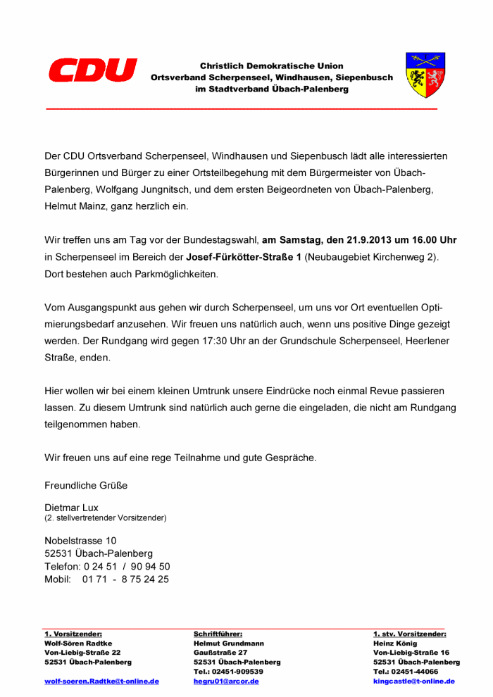 Einladung zur Ortsteilbegehung des CDU Ortsverband Scherpenseel