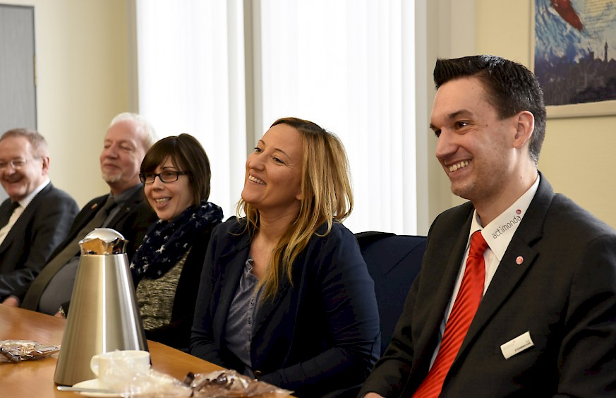 Der beim Benefizschwimmen in der Aachener Ulla-Klinger Halle und dem Ü-Bad von vielen Beteiligten erschwommene Spendenbetrag wurde durch Beauftragte der Actimonda in Beisein von Vertretern des Radio-Senders „100,5 Das Hitradio“ im Übach-Palenberger Rathaus überreicht.